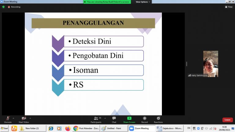 Dr. Nany sedang menjelaskan pertanyaan-pertanyaan para peserta Parenting Kelas Budi Pekerti dalam Sesi Tanya Jawab seputar pandemic Covid 19 khususnya penanganan awal di lingkungan keluarga.