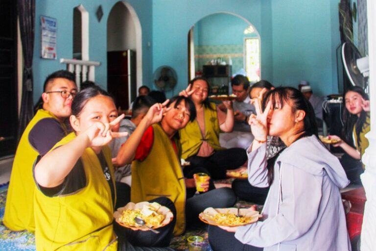 Aroma masakan memenuhi rumah warga tempat relawan berkumpul, dan tak lama kemudian semua orang duduk bersama untuk menikmati makan siang. Makan bersama di tengah suasana perkampungan, berhiaskan canda dan tawa adalah momen yang paling mengesankan bagi banyak relawan.