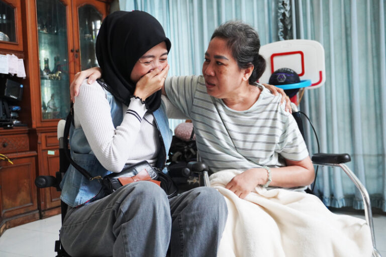 Dengan mata berkaca-kaca, Umi mengenang masa paling berat dalam hidupnya. Rasa sakit di kepala datang setiap hari disertai kejang yang tak bisa ia kendalikan. Tubuhnya bergerak sendiri, tidur pun nyaris mustahil. Umi merasa sangat tak berdaya dan hanya bisa bertahan di tengah sakit yang luar biasa.