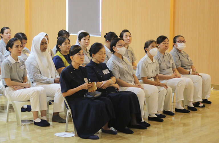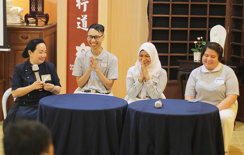 Ming Fong yang sudah mendalami ajaran Buddha di vihara yang kemudian ia praktikkan di Tzu Chi, berbagi tentang 10 Sila Tzu Chi. Ming Fong menyampaikan mengenai sejarah terciptanya Sila dalam Yayasan Buddha Tzu Chi. Berawal dari 5 Sila ajaran Buddhis dan 5 sila selanjutnya sesuai dengan perkembangan zaman dan keberagaman latar belakang relawan, seperti bangsa, agama, suku, ras dan bahasa. Menjelang penghujung acara, terdapat empat Relawan Abu Putih yang dilantik. Suasana haru tercipta saat mereka membagikan perasaannya setelah dilantik dalam barisan relawan Tzu Chi Surabaya.