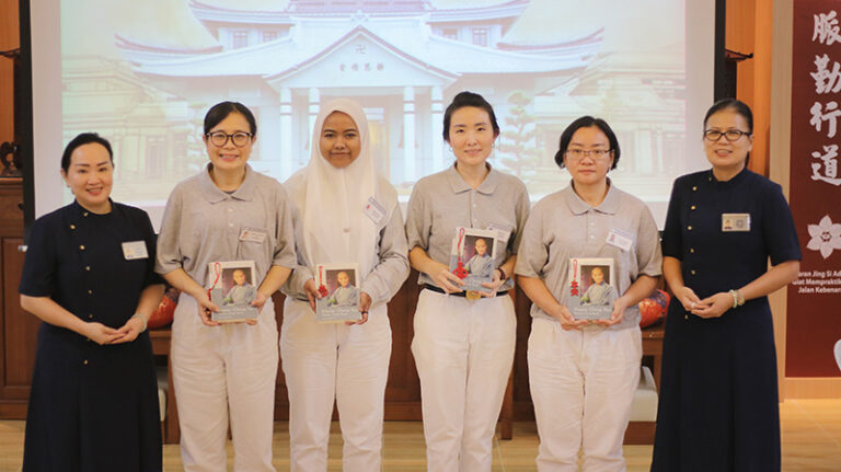 Relawan dengan khidmat dan penuh konsentrasi mendengarkan ceramah Master Cheng Yen. Video berdurasi kurang lebih 12 menit tersebut sukses membuat ruangan menjadi hening. Setiap relawan mendengarkan ceramah dengan seksama pesan yang disampaikan.