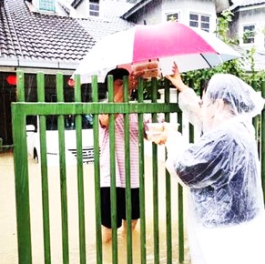 “Kami adalah relawan Tzu Chi. Apakah anda membutuhkan makanan ?” Relawan Tzu Chi berdiri ditengah hujan di luar pagar rumah penduduk yang tertimpa bencana banjir di Malaysia.