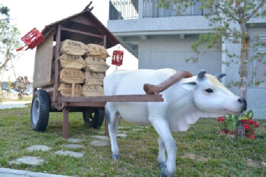 Sebelum pertandingan dimulai, petani itu memuji sapinya yang hanya bertanduk satu dengan menyampaikan kata-kata yang memotivasi, sehingga sapi tersebut berhasil mengangkat 102 kereta lebih cepat dari sapi lainnya. Oleh karenanya majikannya memenangkan 2.000 tael emas.