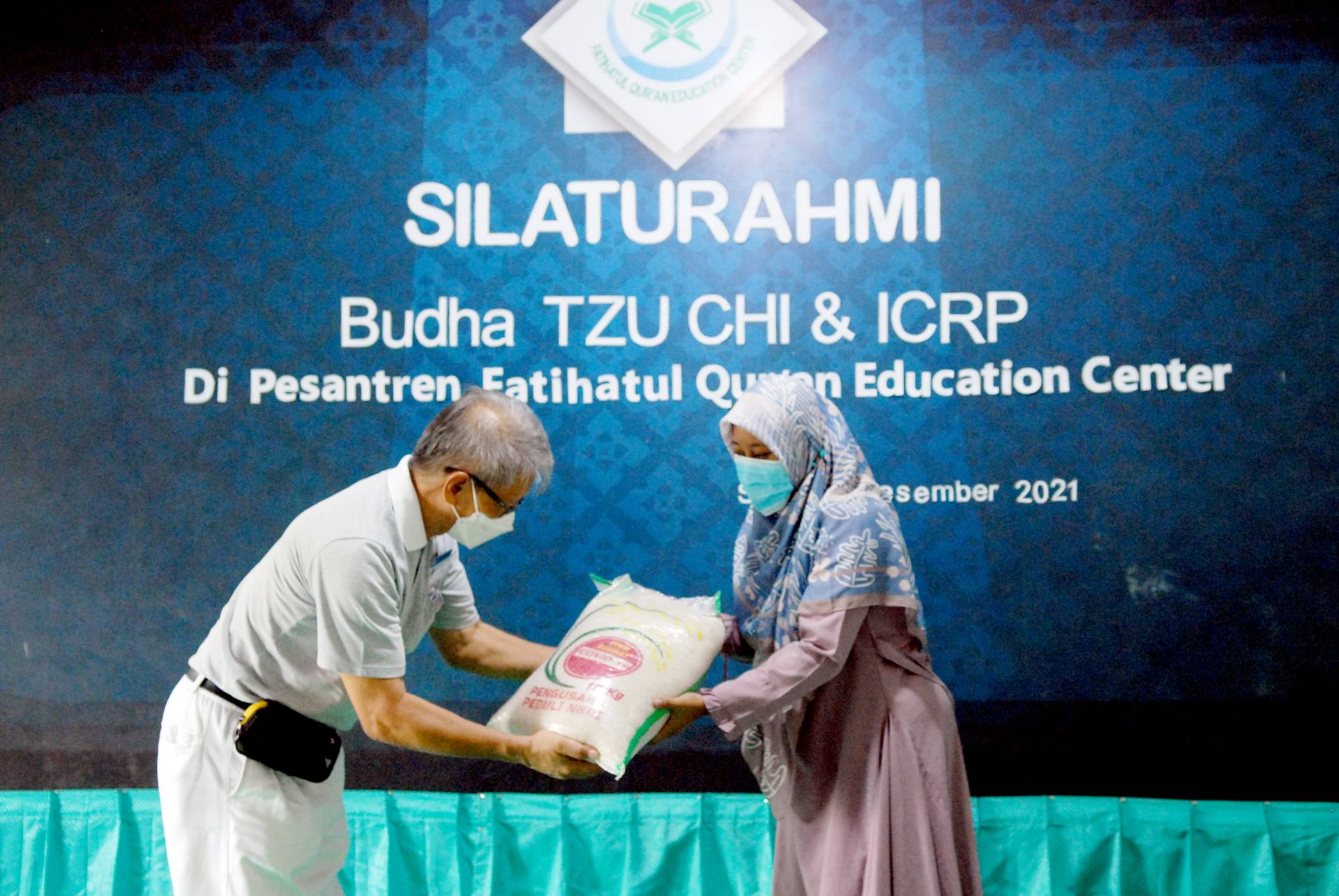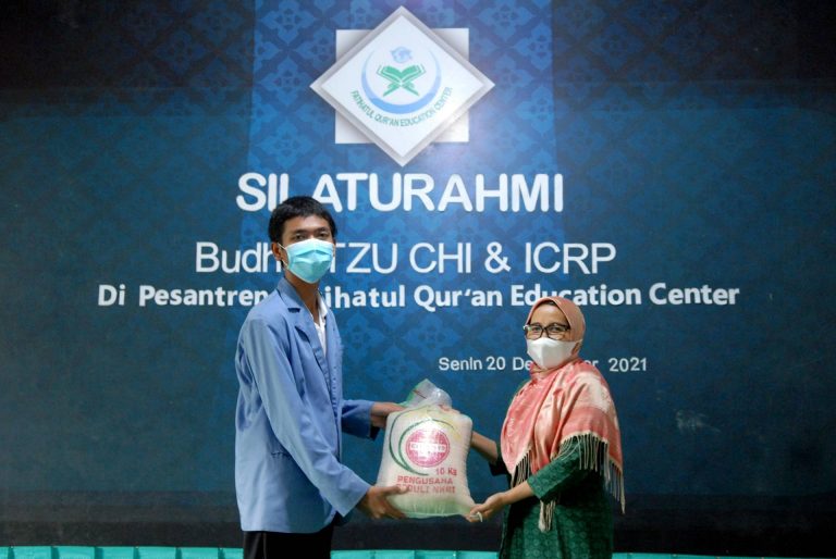 Pada Senin, 20 Desember 2021, Yayasan Buddha Tzu Chi Indonesia bekerja sama dengan Indonesian Conference on Religion and Peace (ICRP) menyerahkan bantuan berupa 1 ton beras secara simbolis kepada Pondok Pesantren Fatihatul Qur’an Education Centre yang berlokasi di Kemang, Bogor. Beras tersebut diperuntukkan bagi keberlangsungan pemenuhan kebutuhan siswa dan pengurus yang tinggal di dalam pesantren. Seluruhnya ada 39 siswa dan 12 guru yang menempati Pesantren Fatihatul Qur’an yang turut terdampak pandemi.