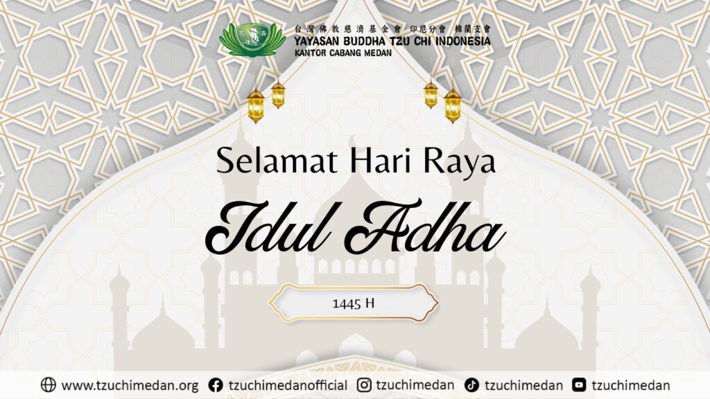 Informasi Tzu Chi Selamat Merayakan Hari Raya Idul Adha 1445 H / 2024 M Updated on June 15, 2024 by Seluruh Pimpinan, Staf, dan Relawan Yayasan Buddha Tzu Chi Indonesia Cabang Medan mengucapkan :Selamat Hari Raya Idul Adha 1445 H / 2024 M “Berada dalam kondisi aman dan selamat adalah berkah, bersedia membantu orang lain adalah tindakan bijaksana”(Master Cheng Yen)