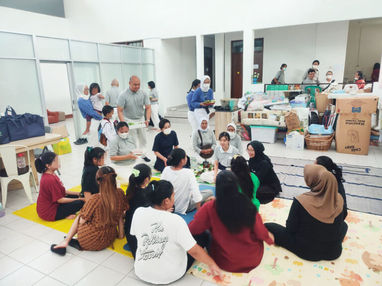 Para Tzu Ching (muda-mudi Tzu Chi) bermain bersama dengan balita-balita penghuni Yayasan Rumah RUTH sambil memberikan makanan dan susu.
