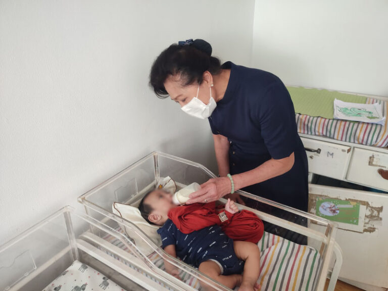 Roslyne relawan Tzu Chi tengah memberikan susu botol kepada seorang balita yang tinggal di rumah RUTH. Para bayi dan balita di rumah RUTH ini merupakan titipan dari para orang tua mereka yang tidak menginginkan kehadiran para bayi dan balita ini.