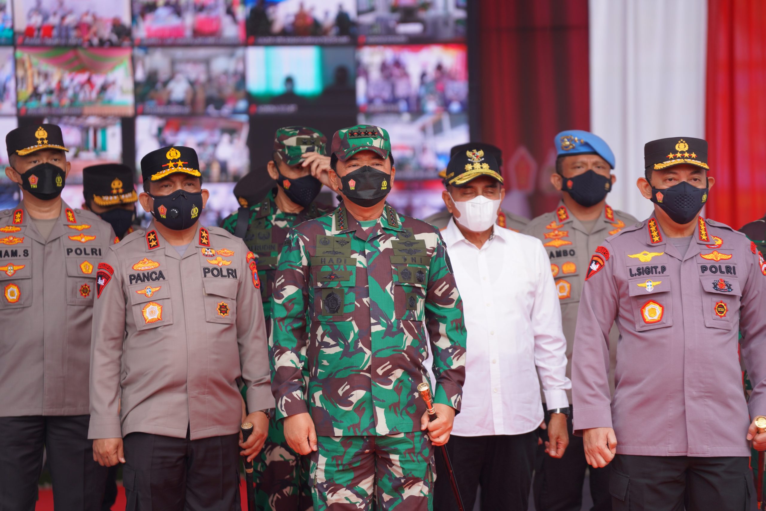 Di hari pertama kegiatan vaksinasi, Panglima TNI Marsekal Hadi Tjahjanto dan Kapolri Jenderal Listyo Sigit Prabowo dan didampingi Gubernur Sumatera Utara Edy Rahmayadi meninjau langsung kegiatan vaksinasi massal tersebut.