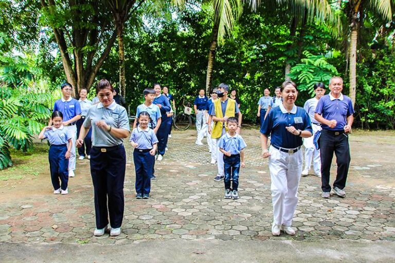 Acara dimulai dengan senam pagi yang dipimpin Netty dan Golianti. Senam pagi menggunakan lagu “Gemu Fa Mi Re” membuat seluruh relawan baik anak-anak hingga dewasa aktif dan bersemangat. Musiknya energik, gerakannya mudah diikuti. Selain untuk menciptakan suasana ceria dan semangat di antara peserta, tentu juga untuk menjaga kesehatan fisik.