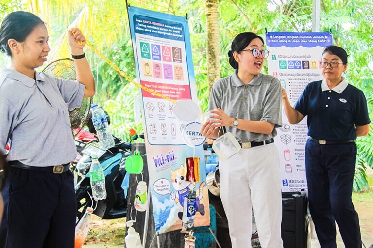 Setelah senam pagi, peserta berkumpul untuk mendengarkan penjelasan dari Beverly Clara tentang pentingnya melakukan pelestarian lingkungan dan cara melakukan daur ulang. Ia menjelaskan jenis benda yang dapat didaur ulang di Tanjung Balai Karimun beserta prosesnya dengan lengkap menggunakan alat bantu ajar yang menarik.