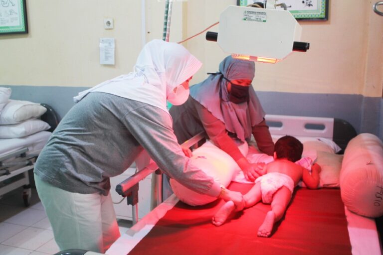 Setelah disinar Hani pun diterapi oleh fisioterapis selama kurang lebih 15 menit. Fisioterapi yang dilakukan yaitu fisioterapi manual dengan pijat dan peregangan untuk meningkatkan fleksibilitas anggota gerak tubuh yang terganggu. Seluruh badan Hani digerakkan ke kanan dan kiri, atas bawah mulai dari kedua tangan, kedua kaki, kedua lutut, pinggang dan leher.” Ternyata Hani ini kaki kirinya lebih pendek dibandingkan dengan yang kanan. Untuk otot leher juga tertarik ke sebelah kiri. Ini yang perlu difokuskan untuk terapi. Kita juga fokuskan terlebih dahulu untuk penguatan otot leher sehingga tulang punggung ikut tertarik dengan harapan bisa menjadi lebih lurus,” Sambung Didi Sudarto, A.Md.Ft. Ketika pada posisi tertentu, sesekali Hani terlihat kesakitan seperti digerakkan atau dimiringkan ke sebelah kanan. “Sejauh ini, anak penderita cerebral palsy yang telah kami terapi paling berhasil sudah bisa berjalan tiga langkah, itu pun sudah dua tahun lebih fisioterapi disini,” ujar Fitri Siska Nuriza S.Kes.Ft, fisioterapis lainnya.