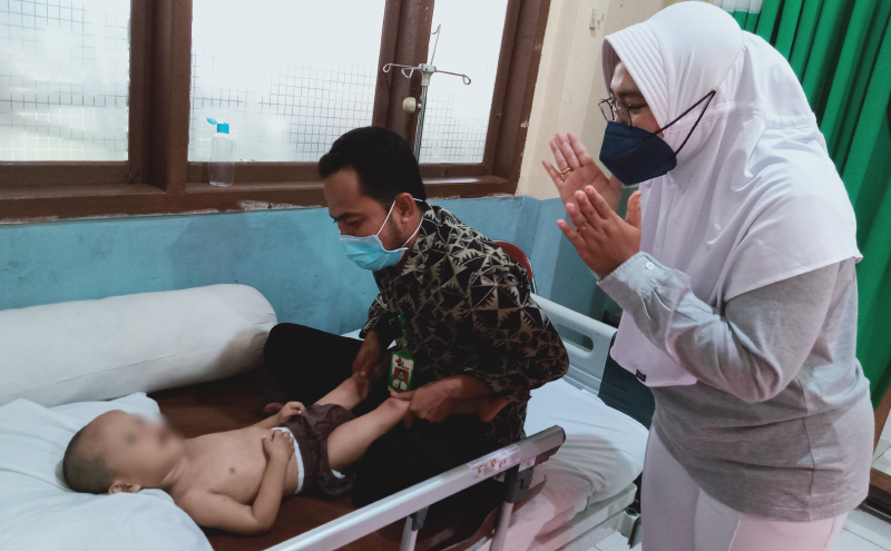 Kembali untuk penguatan otot leher, relawan bersama Wati menghibur dan memberikan semangat kepada Hani yang terus saja menangis. “Senang sekali mendengar cerita ibu Ambar tentang perkembangan kemajuan beberapa anak dengan penyakit yang sama dengan Hani. Semoga setelah menjalani pengobatan ini Hani juga ada perkembangan ke arah lebih baik seperti anak lainnya.” ujar Agustina Melisa dengan penuh harap. Wajah bahagia terpancar dari Wati karena keinginannya untuk membawa Hani berobat akhirnya terwujud. “Alhamdullilah saiki Hani wis iso digowo (bisa dibawa berobat) berobat. Semoga Hani sehat terus yo, Bu,” ucapnya penuh rasa haru.