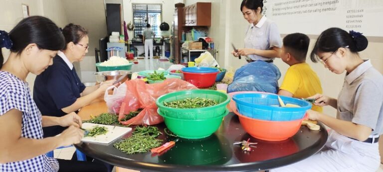 Tim konsumsi beserta relawan Tzu Chi Hu Ai Titi Kuning menyiapakan masakan yang akan di jual dalam bazar di Depo Pelestarian Lingkungan Titi Kuning.