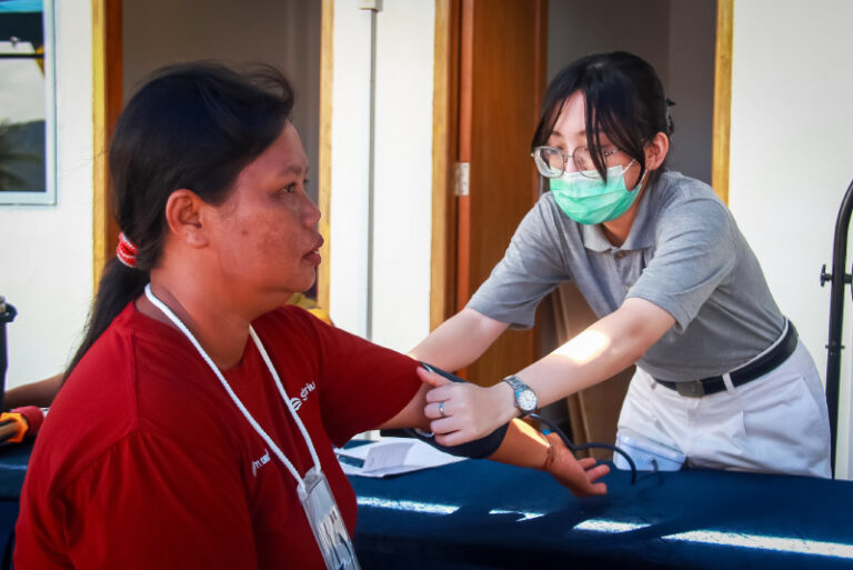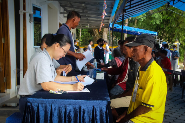 “Mengadakan acara ini, kami harus melakukan survei terlebih dahulu dan meminta izin dari Dinas Kesehatan. Dari Dinas Kesehatan, kami mendapat informasi mengenai daerah-daerah pelosok yang biasanya sulit mengakses layanan kesehatan. Data itulah yang menjadi acuan kami. Kebetulan, di Teluk Setimbul baru dibangun vihara, sehingga kami dapat meminjam tempat di sana. Sebelum survei, kami memang berpikir vihara itu pasti luas dan cukup besar untuk mengadakan acara ini. Saya sangat senang karena melihat laporan dari bulan pertama hingga ketiga, obat yang diberikan benar-benar diminum oleh warga, dan kondisi kesehatan mereka menunjukkan perbaikan,” ungkap Netty, selaku koordinator kegiatan.
