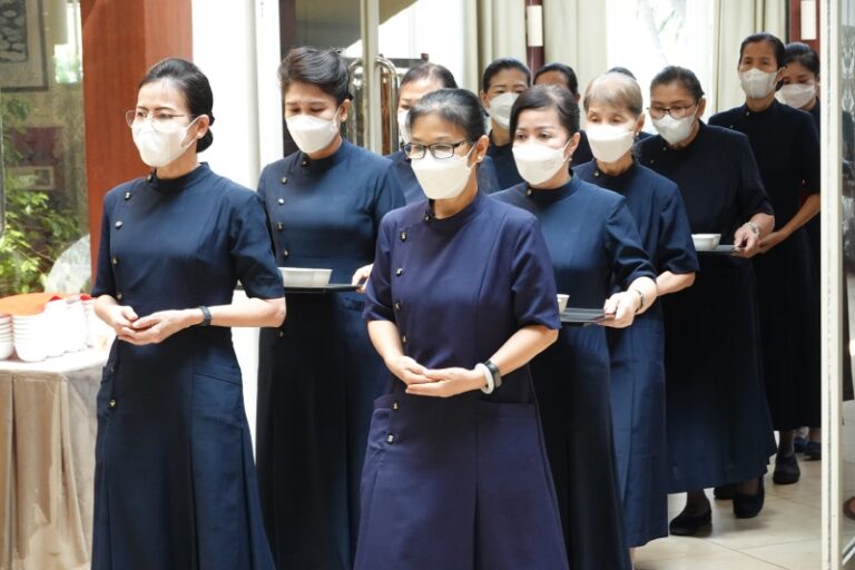 Selesai menjalani prosesi pemandian rupang Buddha para relawan Tzu Chi menyuguhkan secangkir teh hangat. Suasana penuh haru pun tercipta ketika Opa-Oma yang menerima suguhan teh yang diberikan oleh anak-anak mereka ataupun relawan Tzu Chi.