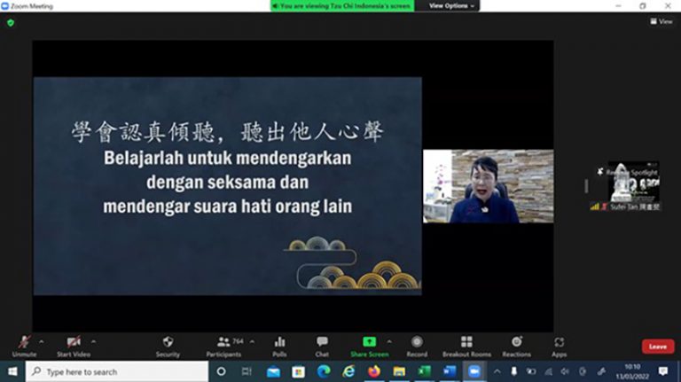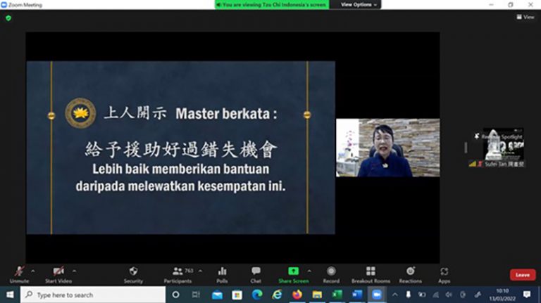 Sylvia Chuwardi (50), relawan Komite Tzu Chi asal Medan, Sumatera Utara bersyukur dengan adanya technologi cangih di masa pandemi ini membuat kondisi dan sebab menjadi matang, sehingga kita dapat mendengar, merenungkan dan merealisasikan dalam tindakan nyata. “Mengubah kerisauan menjadi Kebuddhaan,” kata Sylvia Chuwardi.