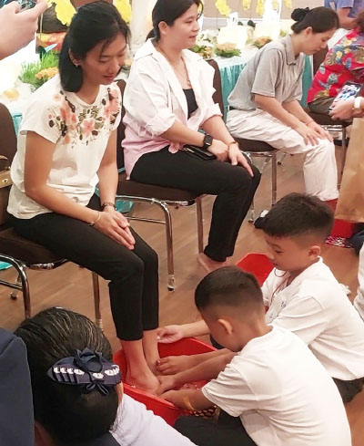 Momen basuh kaki orang tua merupakan momen yang penuh keharuan seperti yang dirasakan oleh Fina, yang kakinya dibasuh oleh kedua anak tercinta. Dengan penuh keharuan Fina mengungkapkan. “Kegiatan ini bisa memberikan banyak pembelajaran bagi anak-anak. Bagaimana cara menghormati orang tua, terutama ibu, karena tanpa ibu, kita tidak bisa ada di dunia ini, jadi harus lebih menghargai orang tua, dan tahu cara bersikap yang baik,” ungkapnya.