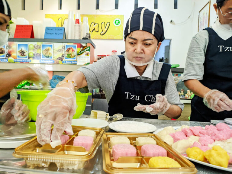“Saya sangat bahagia karena merasa masih mampu ikut kegiatan ini. Saya hanya bisa membantu yang ringan-ringan seperti menempel stiker kotak kue bulan dan menggunting kotak. Tahun ini pembuatannya lebih rumit tetapi merasa puas setelah melihat hasil pembuatan kotaknya,” ungkap Aciu, relawan.