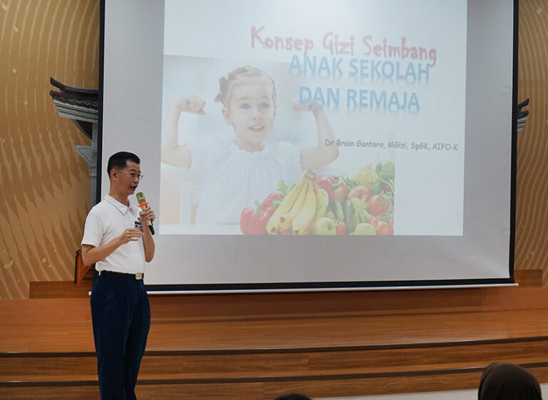 Di waktu yang bersamaan di lobi lantai 4, Dr. Brain Gantoro, Mgizi, SpGK, AIFO-K, membawakan materi dengan topik “Konsep Gizi Seimbang Anak Sekolah dan Remaja”. Pada materi ini, anak-anak dan remaja dibekali dengan ilmu pengetahuan yang bermanfaat agar mereka bisa bertumbuh kembang dengan baik. Asupan gizi yang optimal, baik dalam hal kuantitas maupun kualitas sangat penting untuk pertumbuhan serta perkembangan yang optimal. Untuk itu, pola makan anak-anak dan remaja perlu ditingkatkan ke arah konsumsi seimbang.